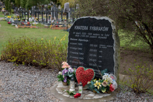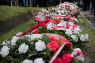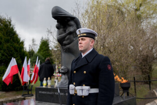 Uroczystości z okazji Dnia Pamięci Ofiar Zbrodni Katyńskiej oraz 77. rocznicy II masowej zsyłki Polaków na Sybir. Cmentarz Łostowicki w Gdańsku, Pomnik Golgoty Wschodu