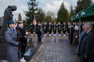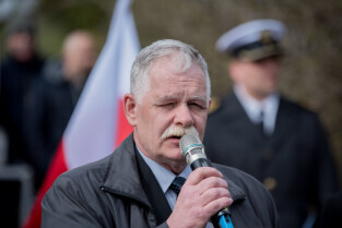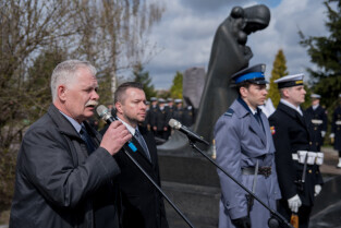 Uroczystości z okazji Dnia Pamięci Ofiar Zbrodni Katyńskiej oraz 77. rocznicy II masowej zsyłki Polaków na Sybir. Cmentarz Łostowicki w Gdańsku, Pomnik Golgoty Wschodu. Nz. Mariusz Łuczyk - Wicewojewoda Pomorski