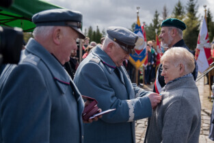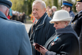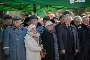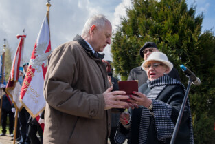 Uroczystości z okazji Dnia Pamięci Ofiar Zbrodni Katyńskiej oraz 77. rocznicy II masowej zsyłki Polaków na Sybir. Cmentarz Łostowicki w Gdańsku, Pomnik Golgoty Wschodu. Nz. Irena Witort, Jan Okulicz, Józefa Kubiak