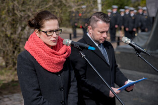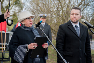 Uroczystości z okazji Dnia Pamięci Ofiar Zbrodni Katyńskiej oraz 77. rocznicy II masowej zsyłki Polaków na Sybir. Cmentarz Łostowicki w Gdańsku, Pomnik Golgoty Wschodu. Nz. Aleksandra Dulkiewicz Z-ca Prezydenta ds. polityki gospodarczej