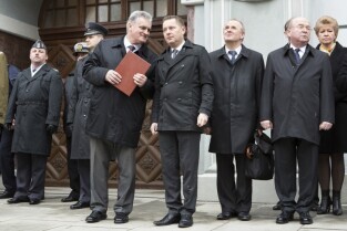 Cmentarz Wojenny Żołnierzy Radzieckich. Obchody 70. rocznicy "Powrotu Gdańska do Macierzy". Nz. Przewodniczący Rady Miasta Gdańska Bogdan Oleszek i Prezydent Gdańska Paweł Adamowicz