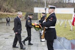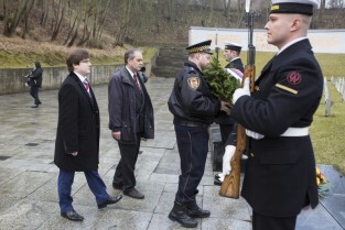 Cmentarz Wojenny Żołnierzy Radzieckich. Obchody 70. rocznicy "Powrotu Gdańska do Macierzy". Nz. po lewej Przewodniczący Rady Miasta Gdańska Bogdan Oleszek, po środku Anna Kieturakis, po prawej Z-ca Prezydenta Gdańska Piotr Grzelak