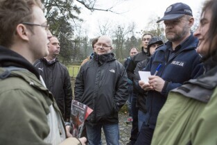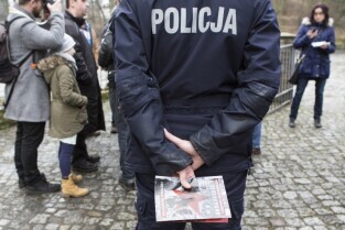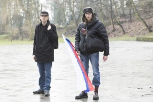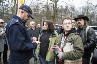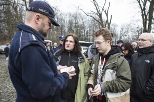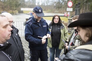Cmentarz Wojenny Żołnierzy Radzieckich. Obchody 70. rocznicy "Powrotu Gdańska do Macierzy". Nz. protestujący przeciwko upamiętnianiu radzieckich żołnierzy, wśród nich gdańska radna Anna Kołakowska (PiS)