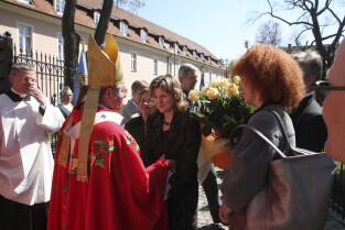 Gdańsk, Katedra Oliwska. Metropolita Gdański Arcybiskup Sławoj Leszek Głód - pierwsza rocznica ingresu. Nz. komunię otrzymuje Prezydent Gdańska Paweł Adamowicz