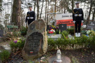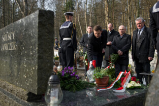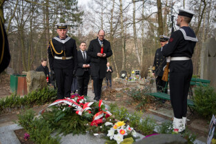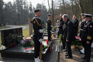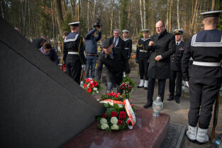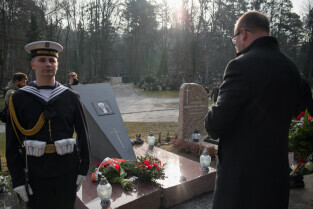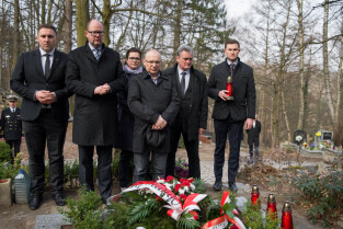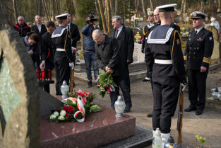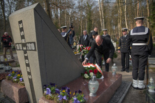 Gdańsk. Cmentarz Srebrzysko. Rocznica katastrofy lotniczej pod Smoleńskiem. Kwiaty na grobach sładali Prezydent Gdańska Paweł Adamowicz wraz z Przewodniczącym Rady Miasta Bogdanem Oleszkiem oraz Radnymi Miasta Gdańska