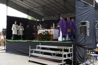 Gdańsk. Msza św. odprawiona przez Metropolitę Gdańskiego Abp Słowoja Leszka Głódzia oraz uroczystość składania kwiatów i wieńców pod Pomnikiem Obrońców Poczty Polskiej