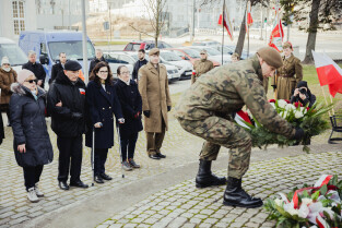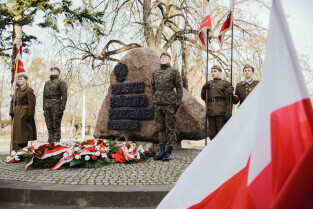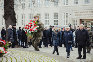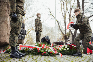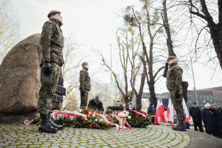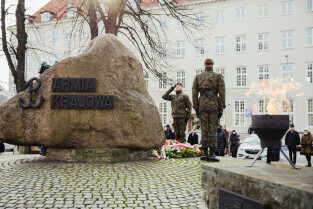 Gdańsk, Targ Rakowy. Rocznica przemianowania Związku Walki Zbrojnej na Armię Krajową. W uroczystości udział brali, prezydent Miasta Aleksandra Dulkiewicz. Obecni byli też przedstawiciele wojska, służb mundurowych, organizacji kombatanckich, młodzież, a także Rodziny Katyńskiej i Rodziny Ponarskiej