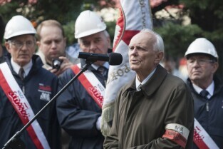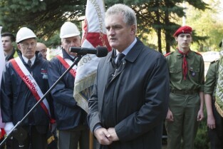 Gdańsk, Targ Rakowy. 74. rocznica utworzenia Polskiego Państwa Podziemnego i Szarych Szeregów. Nz. Przewodniczący Rady Miasta Gdańska Bogdan Oleszek