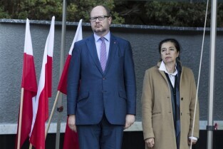 Gdańsk, Cmentarz Łostowicki. 76. rocznica utworzenia Polskiego Państwa Podziemnego i Szarych Szeregów. Nz. Prezydent Gdańska Paweł Adamowicz i Radna Miasta Gdańska Małgorzata Chmiel