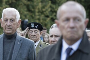 Gdańsk, Cmentarz Łostowicki. 76. rocznica utworzenia Polskiego Państwa Podziemnego i Szarych Szeregów. Nz. Prezes Okręgu Pomorskiego Światowego Związku Żołnierzy Armii Krajowej por. Jerzy Grzywacz
