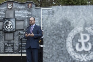 Gdańsk, Cmentarz Łostowicki. 76. rocznica utworzenia Polskiego Państwa Podziemnego i Szarych Szeregów. Nz. Prezydent Gdańska Paweł Adamowicz