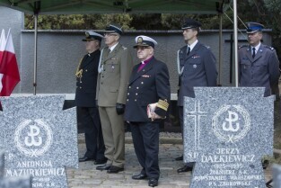 Gdańsk, Cmentarz Łostowicki. 76. rocznica utworzenia Polskiego Państwa Podziemnego i Szarych Szeregów. Nz. Ks. kmdr dr Marian Próchniak