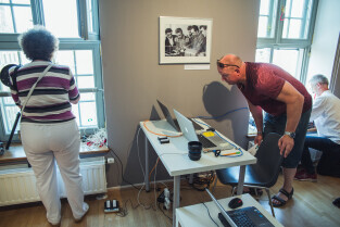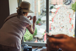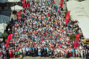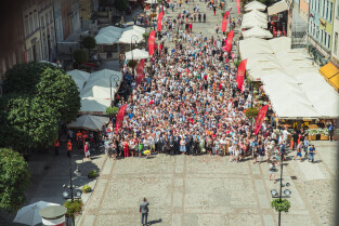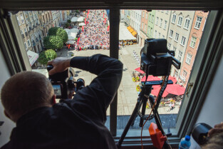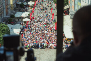 Gdańsk, ul. Długi Targ. Rodzinne Zdjęcie Gdańszczan. Nz. Dariusz Kula -