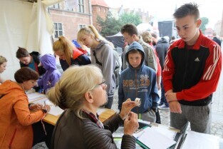 Gdańsk. XI Rodzinny Bieg Gdańszczan. Start i meta biegu na Targu Węglowym, każdy uczestnik otrzymał pamiątkowy medal. Rozlosowano atrakcyjne nagrody.