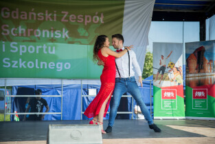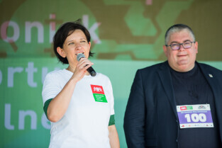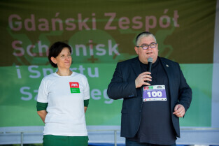 Gdańsk. Park im. Jana Pawła II. Rodzinny Bieg Gdańszczan. Marlena Zajdzińska i Wiceprezydent Gdańska Piotr Kowalczuk