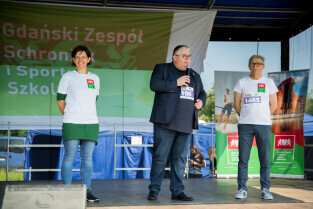 Gdańsk. Park im. Jana Pawła II. Rodzinny Bieg Gdańszczan. Nz. Radny Andrzej Kowalczys, Marta Libudzic i Wiceprezydent Gdańska Piotr Kowalczuk