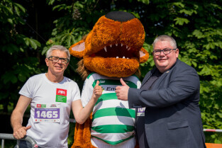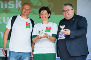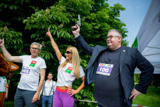 Gdańsk. Park im. Jana Pawła II. Rodzinny Bieg Gdańszczan. Marlena Zajdzińska, Wiceprezydent Gdańska Piotr Kowalczuk i Radny Andrzej Kowalczys