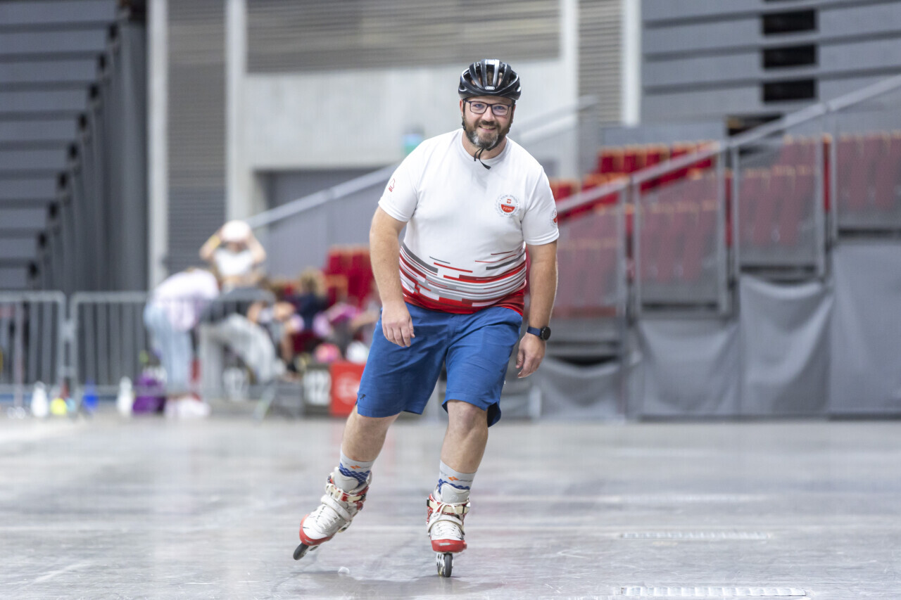 Gdańsk / Sopot. Rolkowisko to cykliczna impreza organizowana dla amatorów jazdy na rolkach we wnętrzu hali sportowo-widowiskowej Ergo Arena. Nz. Adam Rozenberg, organizator imprezy