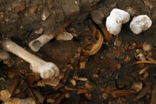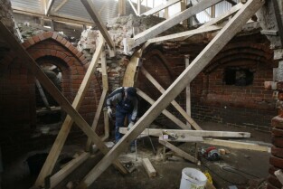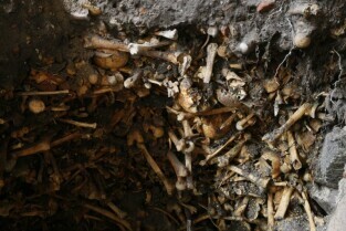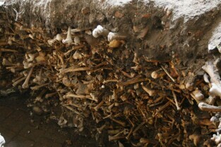 Zabytkowe romańskie piwnice z XIII w. przy kościele św. Mikołaja w Gdańsku. Nz. tzw. ossuarium - gdzie składowane były kości z likwidowanych cmentarzy głównie w XVI-XVII i XVIII wieku