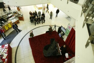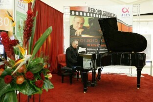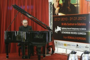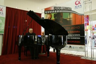 Gdańsk, Centrum Handlowe Alfa Centrum. Romuald Koperski, znany podróżnik, bije rekord Guinessa w najdłuższej grze na fortepianie. Obecny rekord wynosi 101 godz.7 min i go ustanowił w 2008 r. Charles Brunner. Aby pobić ten rekord, Romuald Koperski musi grać bez przerwy od środy do niedzieli.
