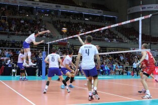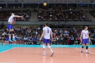 Hala ERGO Arena. W pierwszym meczu ćwierćfinałowym reprezentacja Rosji wygrała z Francją 3:1, zapewniając sobie tym samym grę w półfinale siatkarskich Mistrzostw Europy.