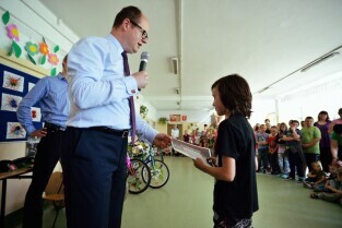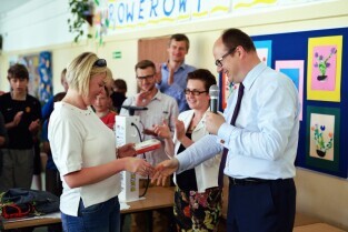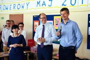 Zwycięzcą kampanii "Rowerowy Maj", która miała pokazać potencjał rowerowy wśród uczniów gdańskich szkół, została szkoła podstawowa nr 62 na gdańskim Krakowcu z 53-procentowym udziałem uczniów dojeżdżających na zajęcia rowerami. Dziś odbyło się uroczyste wręczenie nagród, a Prezydent Paweł Adamowicz dał dobry przykład przyjeżdżając na rowerze.