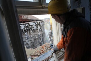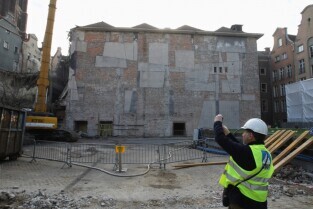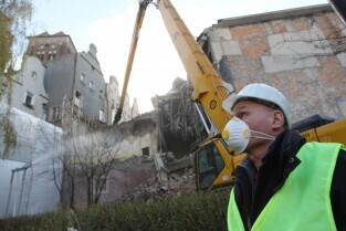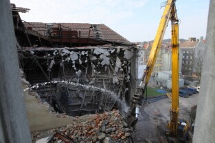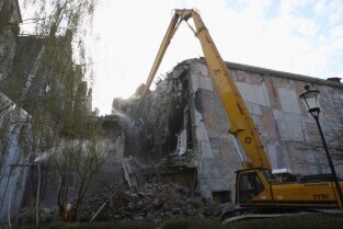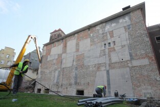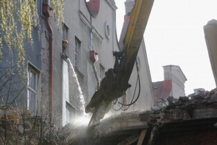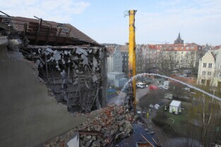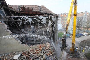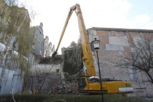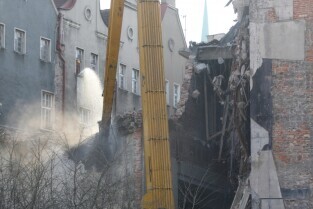 Gdańsk. Trwają prace rozbiórkowe dawnego kina Neptun.