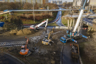 Rozbiórka kładki dla pieszych nad al. Rzeczpospolitej na gdańskiej Zaspie