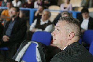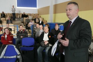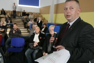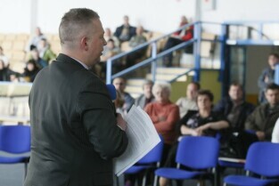Gdańsk, Ujeścisko. Spotkanie informacyjne z mieszkańcami dotyczące rozbudowy układu ulicznego Gdańska Południe w latach 2014-2020. Nz. Z-ca Prezydenta Gdańska Andrzej Bojanowski