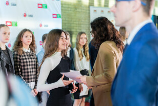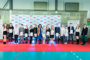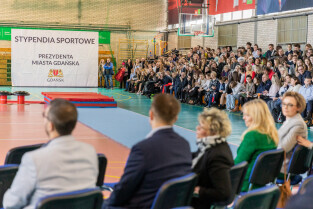Gdańsk, ul. Kołobrzeska. Rozdanie dyplomów jednorazowego stypendium dla uzdolnionych uczniów