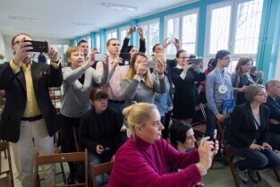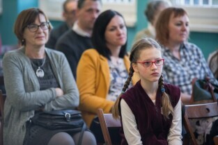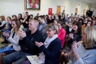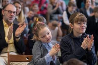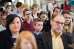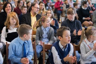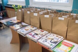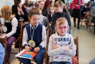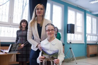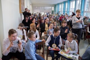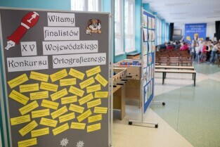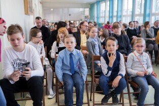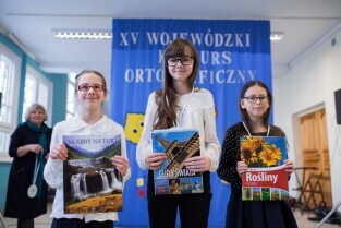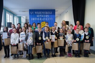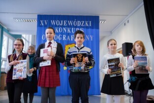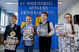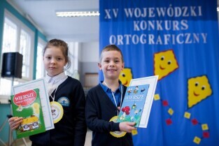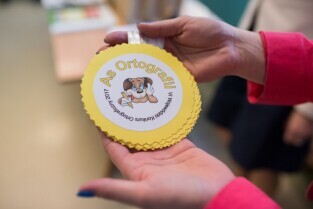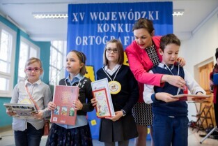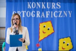 Gdańsk. Szkoła Podstawowa nr 57 przy ulicy Aksamitnej. Rozdanie nagród laureatom konkursu ortograficznego. XV Wojewódzki Konkurs Ortograficzny oraz VI Wojewódzki Konkurs "Ortograficzne Asy"