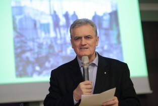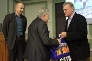 Gdańsk. Rozdanie nagród w "Sylwestrowym Konkursie Butelkowym". Konkurs zorganizowała Rada Miasta Gdańska i Zakład Utylizacyjny w Gdańsku. Nz. Bogdan Oleszek-Przewodniczący Rady Miasta Gdańska.