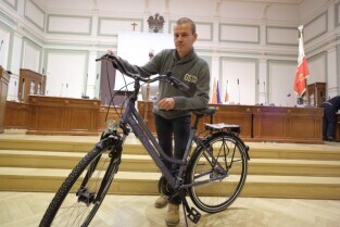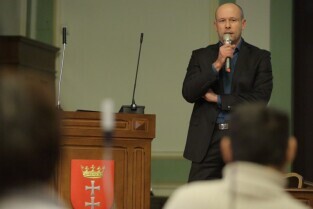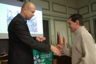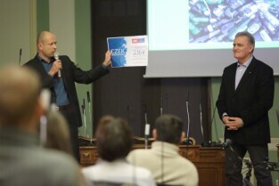 Gdańsk. Rozdanie nagród w "Sylwestrowym Konkursie Butelkowym". Konkurs zorganizowała Rada Miasta Gdańska i Zakład Utylizacyjny w Gdańsku. Nz. Marcin Borowicz.