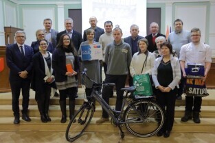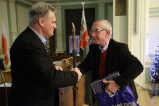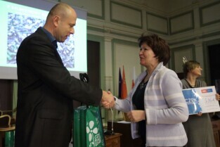 Gdańsk. Rozdanie nagród w "Sylwestrowym Konkursie Butelkowym". Konkurs zorganizowała Rada Miasta Gdańska i Zakład Utylizacyjny w Gdańsku.
