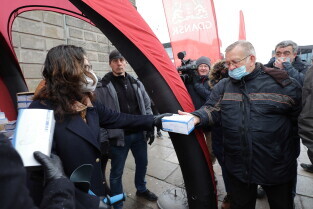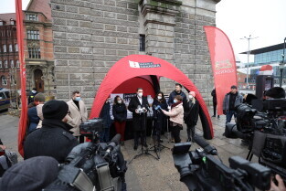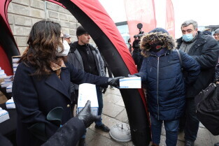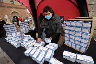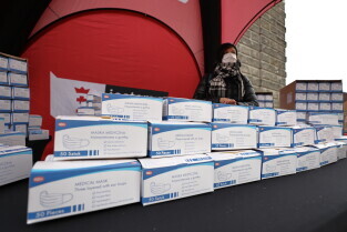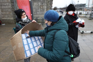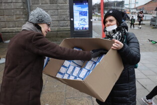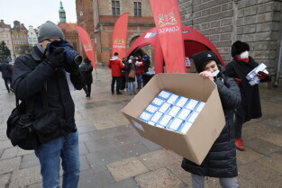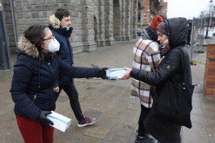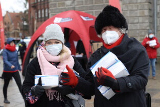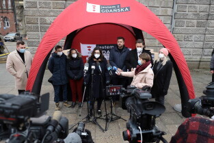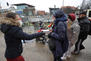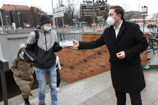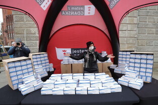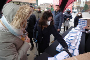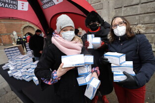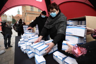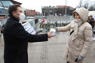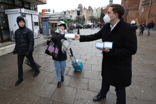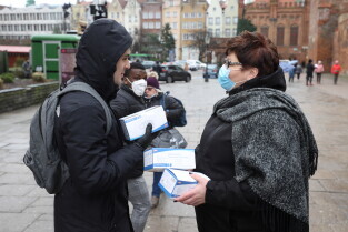 Rozdawanie bezpłatnych maseczek dla mieszkańców Gdańska