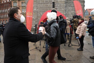 Gdańsk. Rozdawanie bezpłatnych maseczek dla mieszkańców Gdańska .
