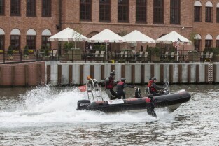 Gdańsk, rzeka Motława. Rozpoczęcie Sezonu Żeglarskiego 2015 w ramach obchodzonego Święta Miasta. Pokaz ratownictwa wodnego