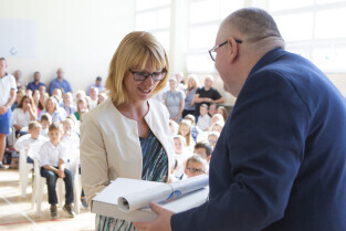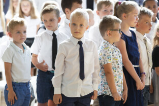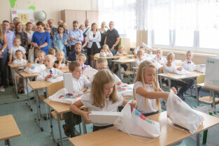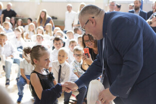 Gdańsk Przymorze. Rozpoczęcie roku szkolnego 2018/2019 w Szkole Podstawowej nr 76 oraz inauguracja zajęć w klasie z językiem chińskim. Nz. Z-ca Prezydenta Gdańska Piotr Kowalczuk