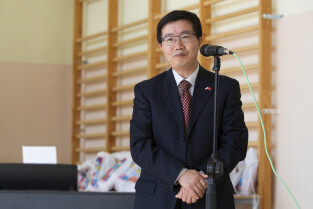 Gdańsk Przymorze. Rozpoczęcie roku szkolnego 2018/2019 w Szkole Podstawowej nr 76 oraz inauguracja zajęć w klasie z językiem chińskim. Nz. konsul Chińskiej Republiki Ludowej Xu Jianguo