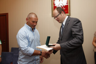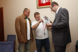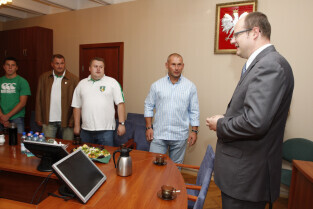 Zawodnicy i działacze klubu sportowego Rugby Club Lechia Gdańsk z wizytą u Pawła Adamowicza, Prezydenta Gdańska