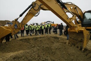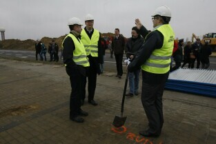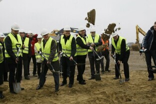Rozpoczęcie budowy nowego terminala pasażerskiego na Gdansk Lech Walesa Airport oraz zamknięcie ul. Słowackiego przy lotnisku. Nz. Prezes Lech Walesa AirPort Włodzimierz Machczyński (po prawej) stoi w miejscu, gdzie znajdzie się narożnik nowego terminala. Od lewej, w kamizelkach, stoją Prezydenci: Sopotu Jacek Karnowski i Gdańska Paweł Adamowicz
