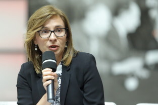 Gdańsk, ECS. Konferencja informacyjna dotycząca festiwalu SOLIDARITY OF ARTS. Nz. Magdalena Mistat-ECS.