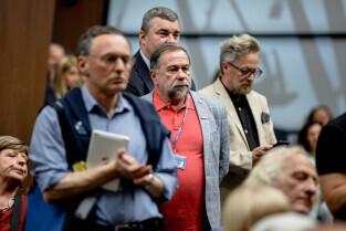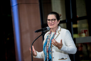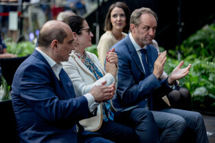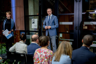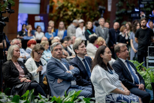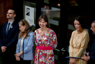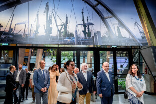 CZŁOWIEK. PRZEMYSŁ. MIASTO - wernisaż wystawy. Wystawę otworzyli jej twórcy oraz Aleksandra Dulkiewicz prezydent Gdańska i marszałek województwa pomorskiego Mieczysław Struk