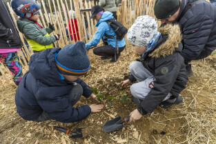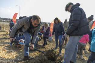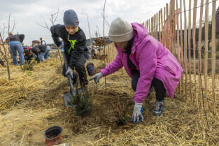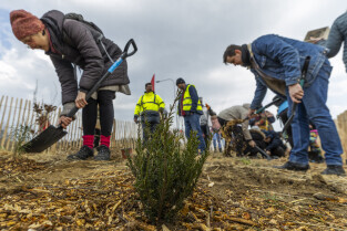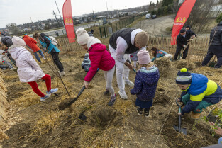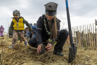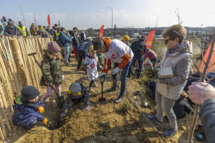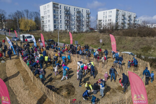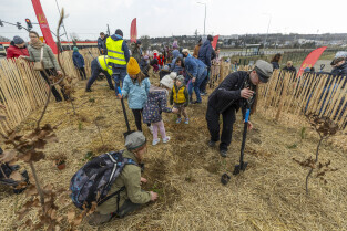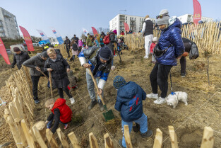 Gdańsk. Sadzenie VI Miejskiego Mikrolasu w dzielnicy Jasień przy ul. Stolema.