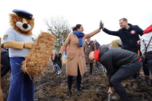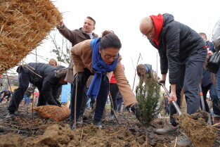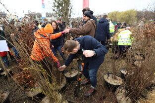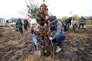 Gdańsk. Sadzenie mikrolasu przy zbiorniku retencyjnym Platynowa.