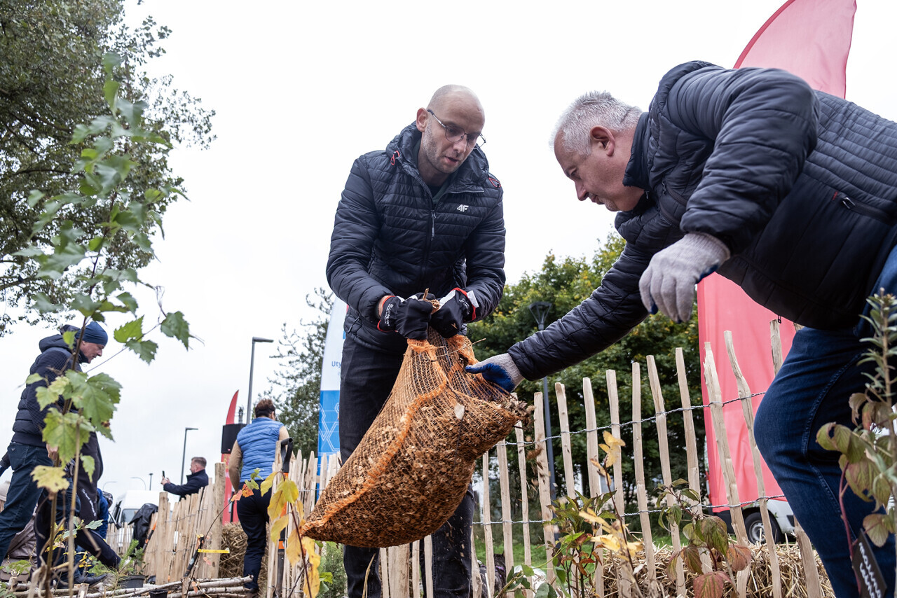 Gdańsk. W Kokoszkach został posadzony kolejny gdański mikrolas w ramach jesiennych nasadzeń. To juz ósmy mikrolas w mieście. Wraz z mieszkańcami drzewa sadzili m.in. prezydent Gdańska Aleksandra Dulkiewicz, dyrektor zarządzający ds. Zielonego Gdańska Piotr Kryszewski, Sławomir Kiszkurno, prezes Zakładu Utylizacyjnego oraz dr Kacper Jakubowski, projektant mikrolasów.