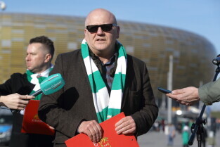 Gdańsk. Katyń... ocalić od zapomnienia. Sadzenie trzech Dębów ku czci Bohaterom Zbrodni Katyńskiej. Nz. Maciej Lisicki-ZKM Gdańsk.