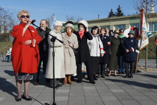 Gdańsk. Katyń... ocalić od zapomnienia. Sadzenie trzech Dębów ku czci Bohaterom Zbrodni Katyńskiej. Nz. Hanna Śliwa-Wielesiuk, prezes Stowarzyszenia Rodzin Katyńskich w Gdańsku.