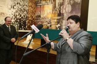 Historycznia Sala BHP w Stoczni Gdańskiej, w której podpisano Porozumienia Sierpniowe, została oddana do użytku po 4-letnim remoncie. Z tej okazji otwarto wystawę "Jest jedna Solidarność". Nz. Henryka Krzywonos-Strycharska