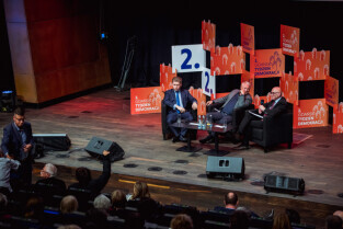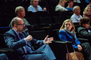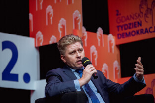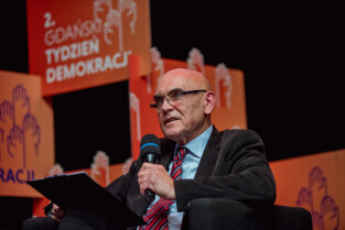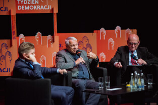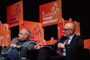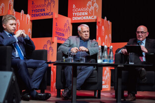 Gdańsk. Gdański Tydzień Demokracji. Salon Młodopolski im. Arama Rybickiego Jaki mamy w Polsce ustrój? W rozmowie udział wzięli prof. Wiesław Władyka oraz prof. Marcin Matczak. Spotkanie poprowadził Marek Ponikowski
